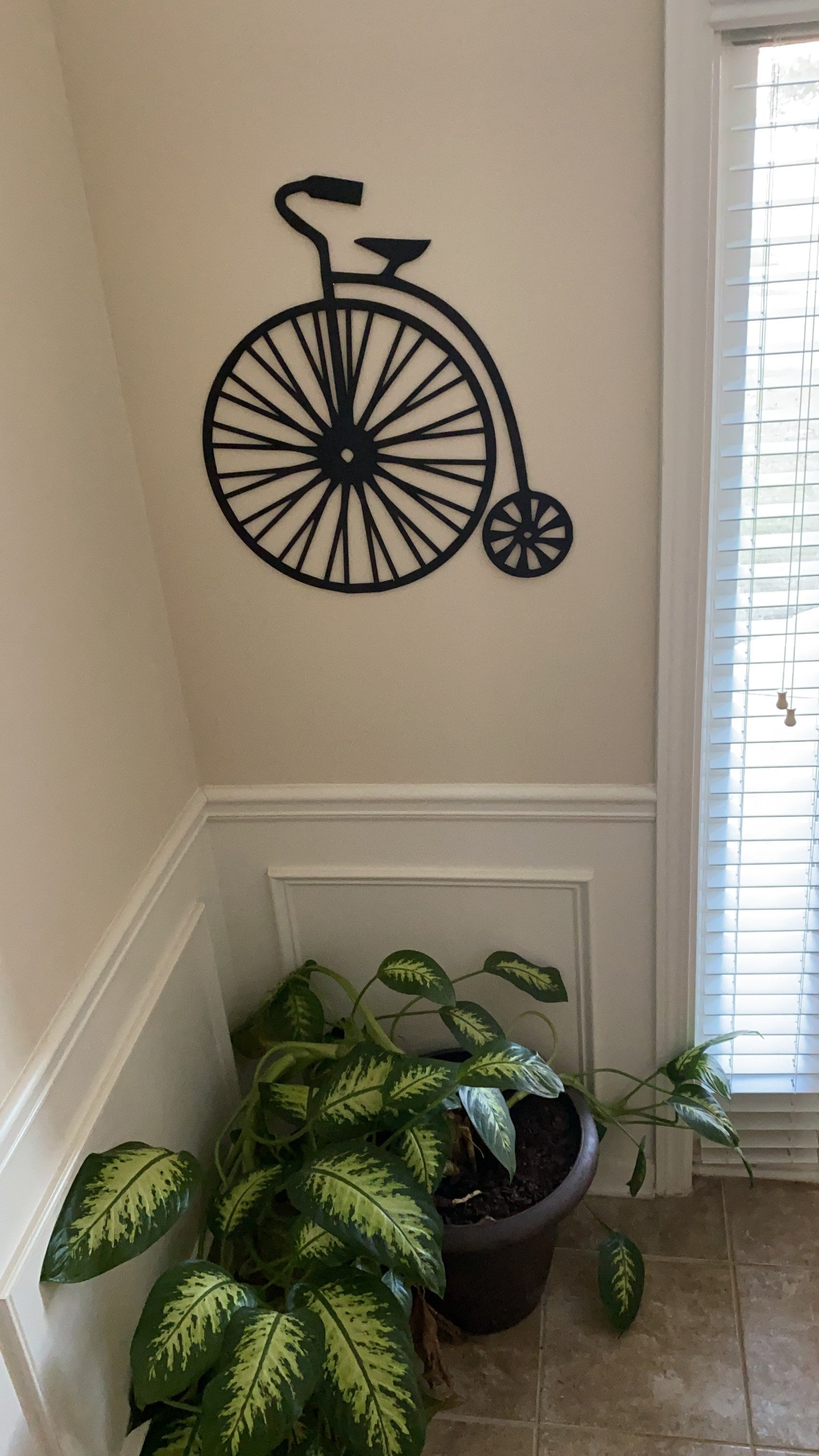 Wooden laser cut Velocipede I Old Bicycle wall decor is an art piece for decoration - home decor - perfect gift. Item is made from 1/4 inch high quality plywood with wood stain.