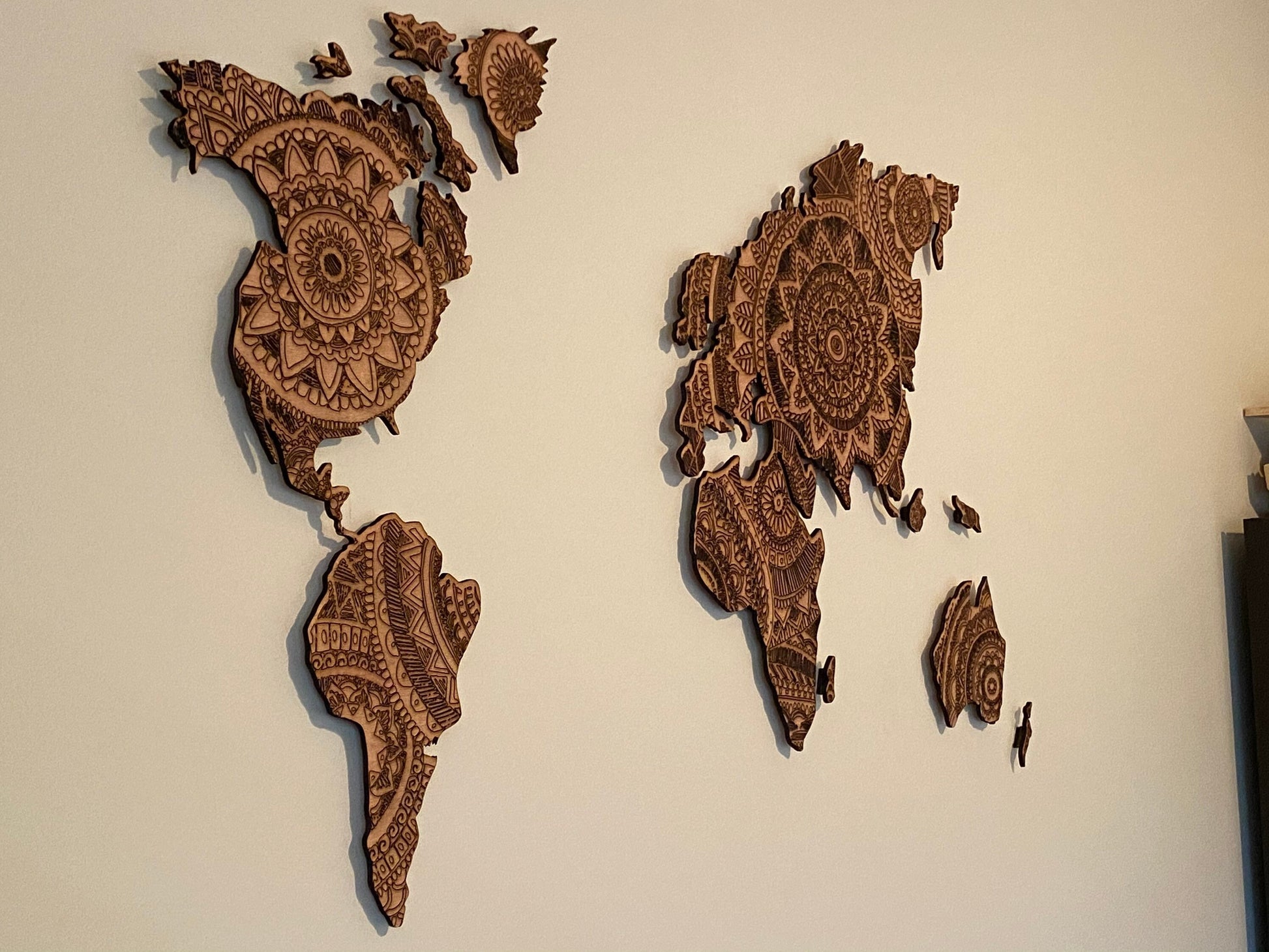 Wooden world map - laser engraved